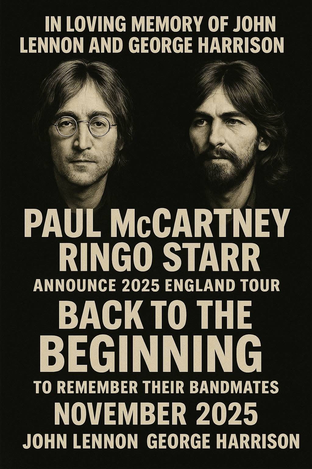 Through *Back to the Beginning*, the spirit of John Lennon and George Harrison will echo once more across England — reminding the world why The Beatles remain, as ever, a timeless force for love, hope, and harmony.