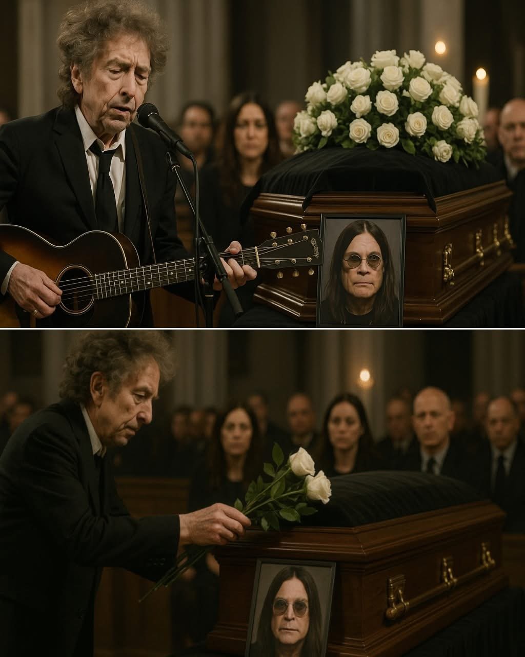 Dylan stood slowly, walked the few steps toward the casket, and placed his weathered hand gently on the polished wood. For a long moment, he said nothing. Then he leaned forward and whispered just loud enough for the front row to hear: