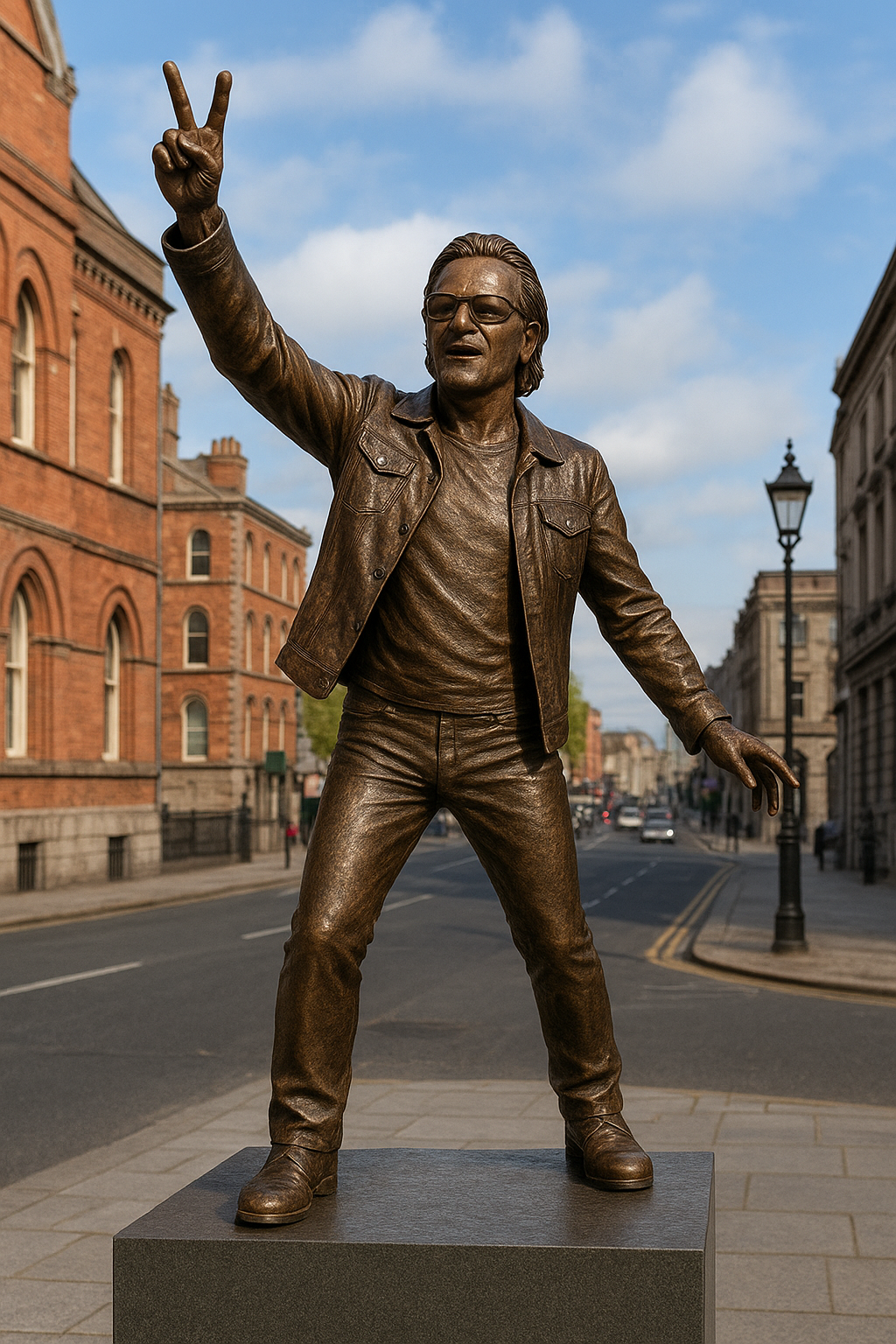 The announcement was made this week by the Dublin City Council in collaboration with the Irish Arts and Heritage Committee, confirming that the life-size bronze statue will stand proudly on Grafton Street, near the bustling heart of the city that shaped Bono’s early years. Designed by acclaimed Irish sculptor Patrick O’Connell, the monument will depict Bono mid-performance — microphone in hand, eyes lifted skyward — capturing both his passion for music and his spirit of hope that has inspired millions around the world.
