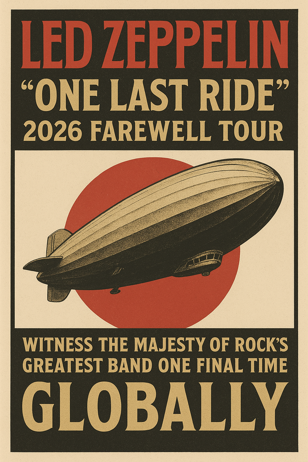 The gods of rock are returning for one final thunderous encore. In a moment destined to define music history, Led Zeppelin has officially announced their 2026 Farewell World Tour, fittingly titled “One Last Ride.” For the first time in over four decades, the surviving members of the legendary band will reunite to give fans around the globe one last chance to experience the raw power, mystique, and majesty of the group that changed rock forever.