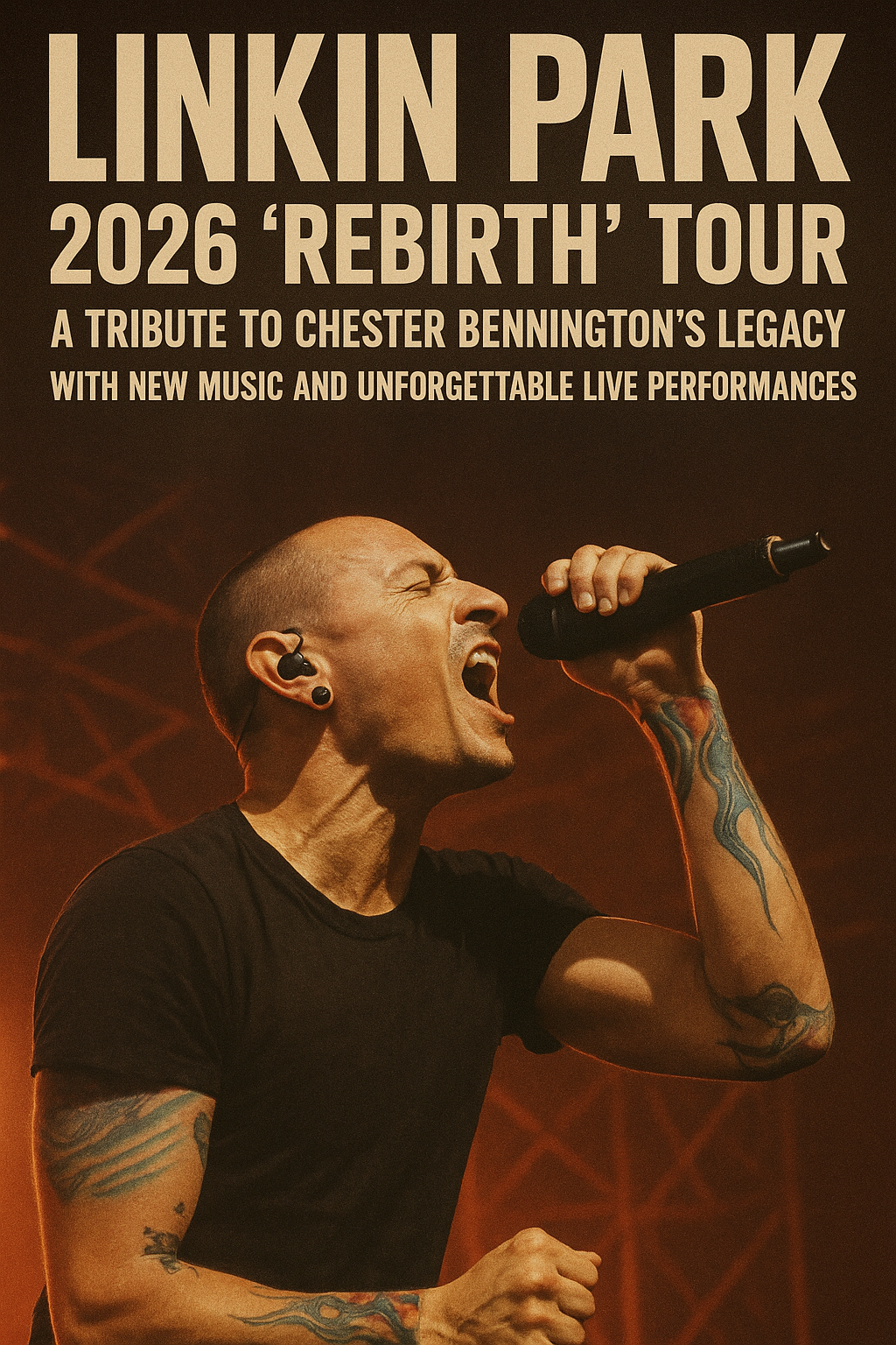 In 2026, Linkin Park is set to embark on one of the most emotional and highly anticipated tours in modern rock history — the “Rebirth” Tour. Marking a powerful return after years of silence, this tour is not just a celebration of the band’s groundbreaking music but a heartfelt tribute to the late Chester Bennington, whose voice and spirit continue to echo through generations of fans.