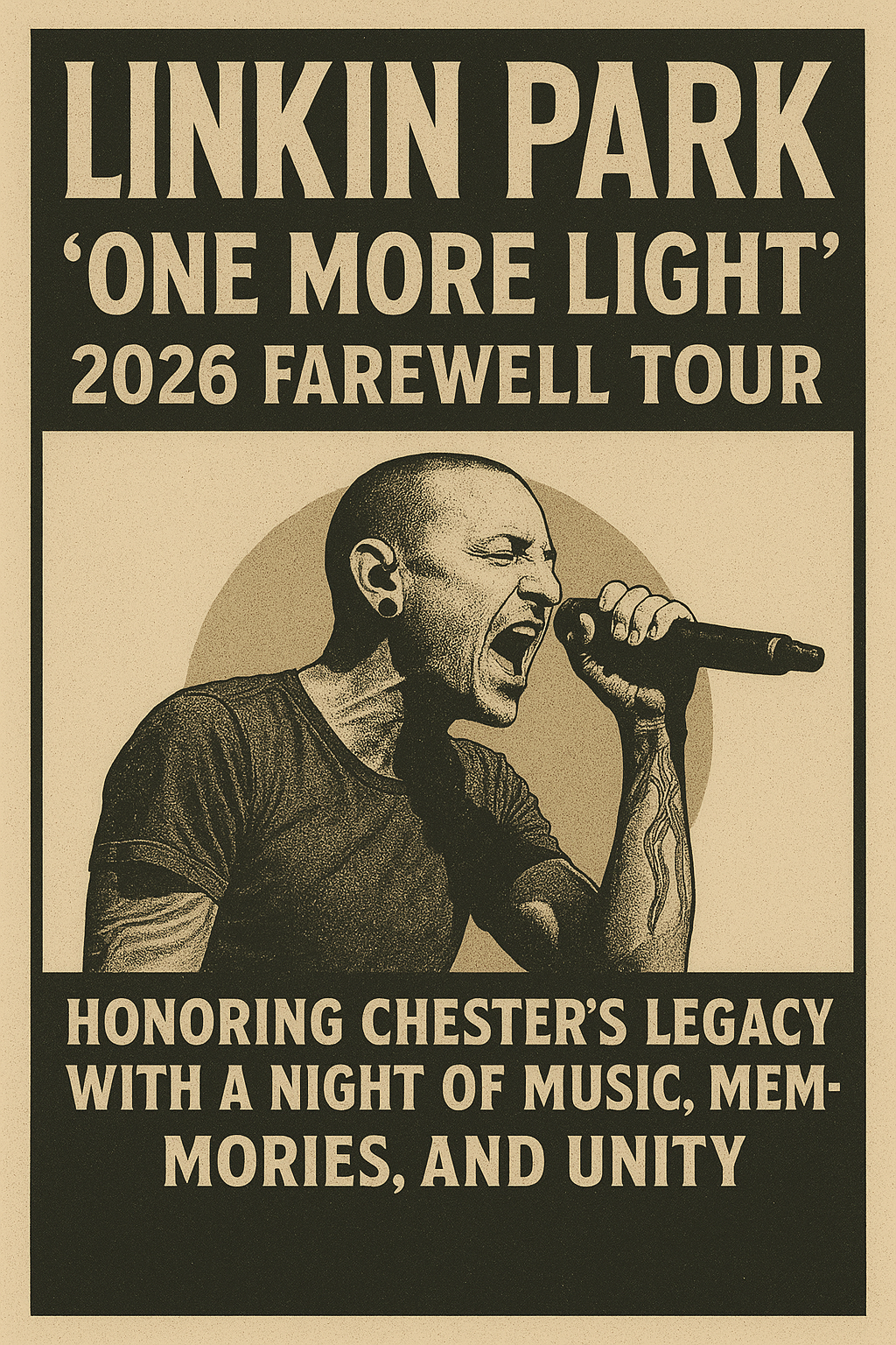 After years of reflection, healing, and gratitude, Linkin Park has announced their most emotional and meaningful chapter yet — the 2026 “One More Light” Farewell Tour, a heartfelt global journey honoring the life and legacy of Chester Bennington, the voice that defined a generation. For millions of fans who grew up with the band’s powerful fusion of rock, rap, and raw emotion, this tour represents both a farewell and a celebration — a final act of love, remembrance, and unity.