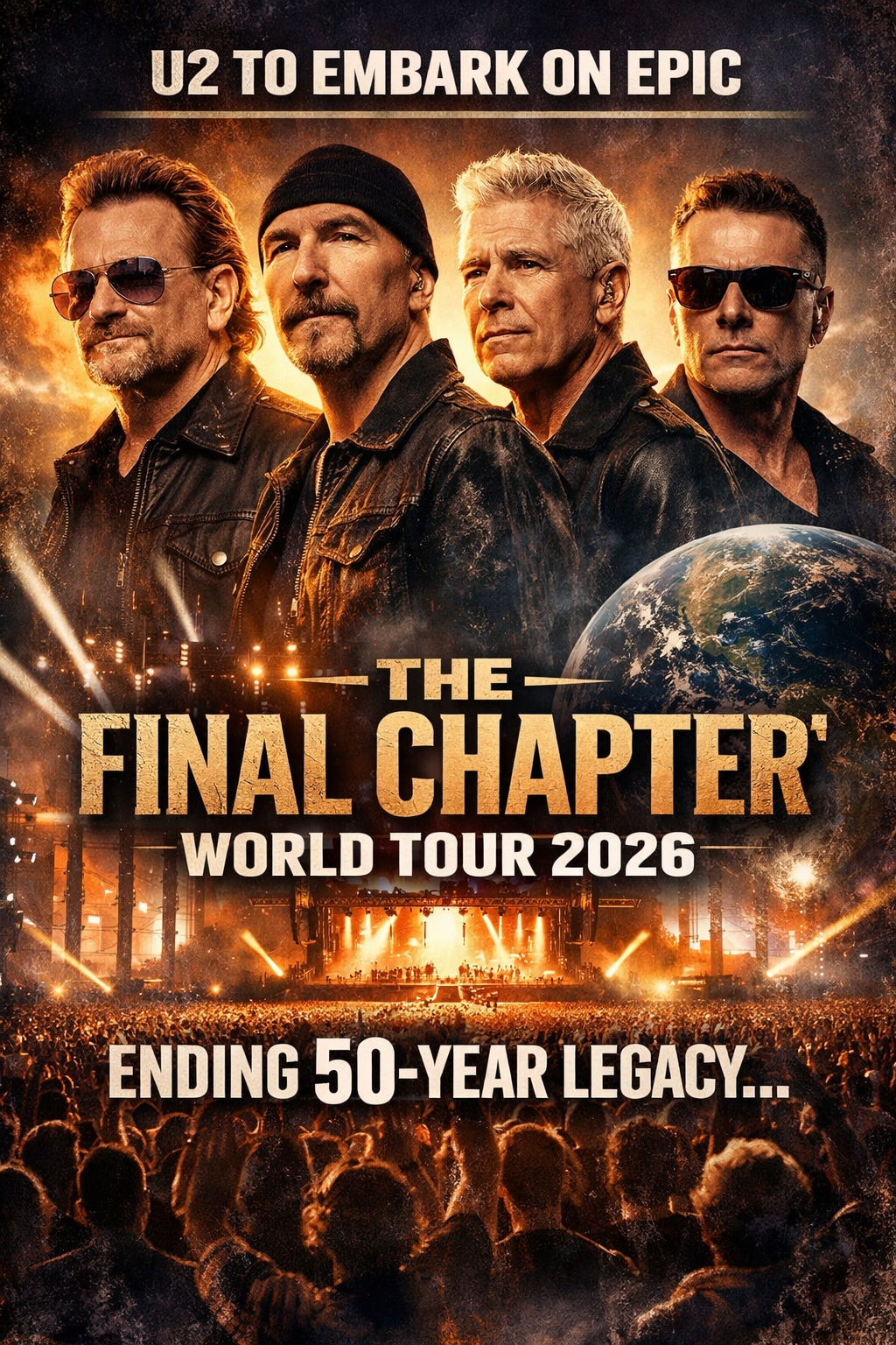 After nearly five decades of redefining rock music, stadium spectacle, and artistic activism, U2 have officially announced their final world tour, fittingly titled “The Final Chapter.” Set to launch in 2026, the historic trek will mark the end of one of the most influential careers in modern music history, bringing an emotional close to a legacy that began in Dublin in the late 1970s and grew to shape generations around the globe.