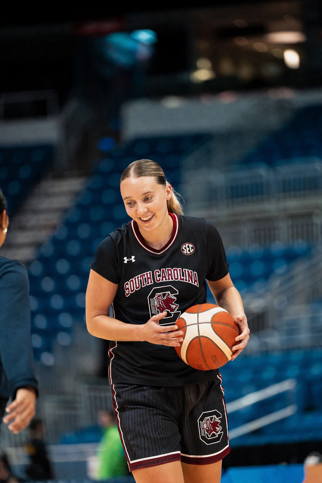 What stands out immediately is the seamless transition. The uniform doesn’t just fit physically—it fits symbolically. There’s a natural connection between the player’s poised demeanor and the gritty, competitive spirit that defines South Carolina athletics. With the ball in her hands and a focused yet relaxed expression, she looks every bit like a leader ready to make an impact.