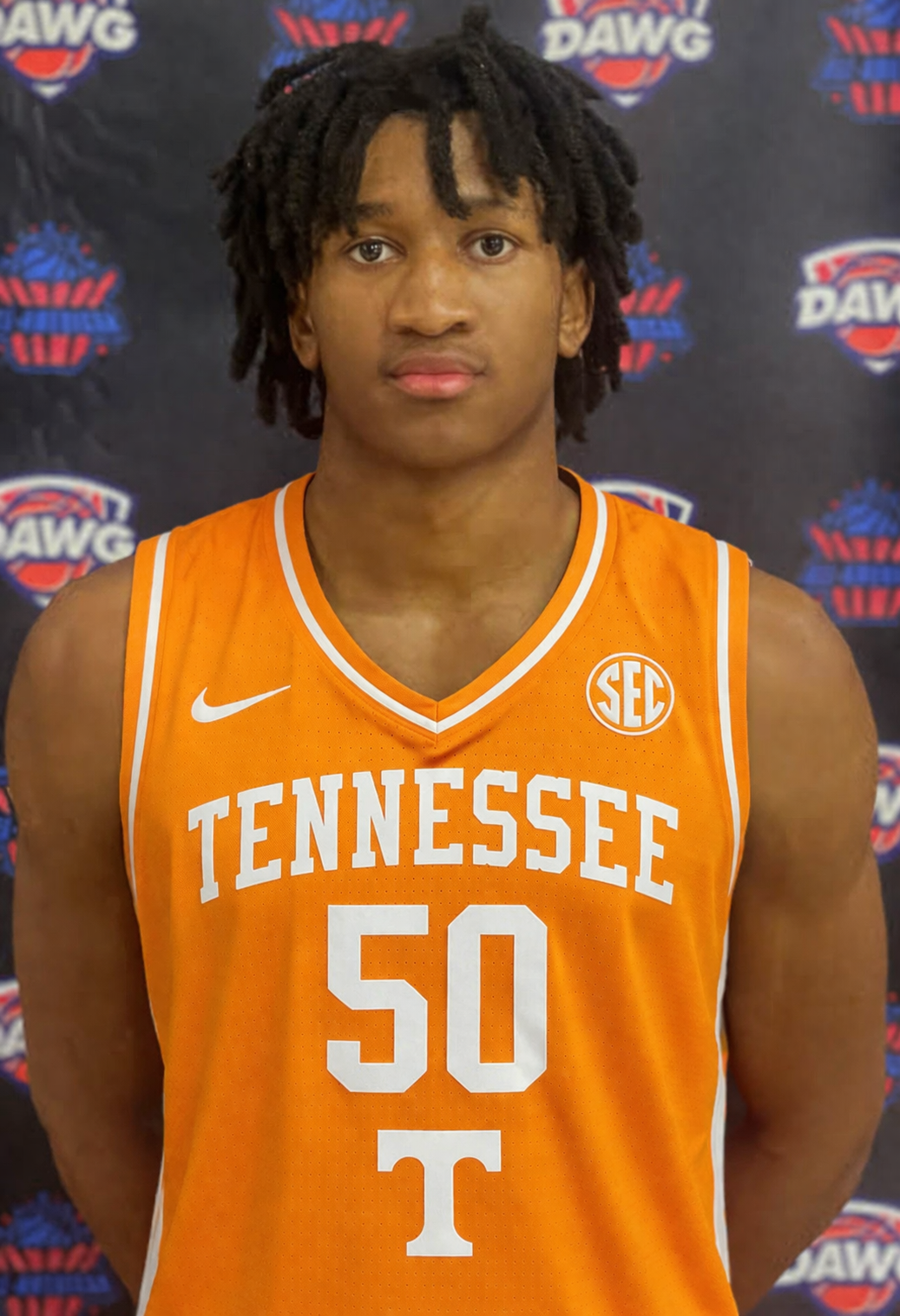 Standing tall in the Volunteers’ signature colors, the athlete immediately commands attention. The bright orange jersey, paired with the clean white lettering and number, reflects a program built on energy, toughness, and a proud basketball tradition. It’s a look that has long been associated with relentless effort and high-level competition, and now, it fits a player ready to embrace that standard.