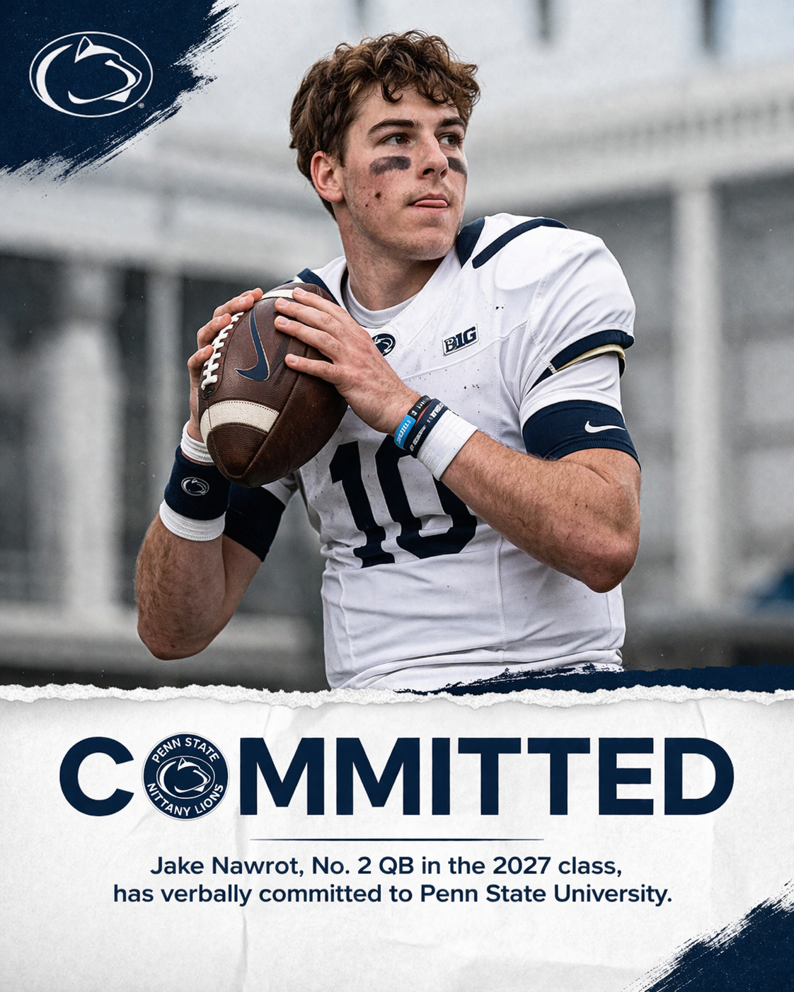 In a stunning twist that has reshaped the recruiting landscape, elite quarterback Jake Nawrot has announced his verbal commitment to Penn State, giving the Nittany Lions one of the biggest wins of the 2027 class. Widely regarded as the nation’s No. 2 quarterback, Nawrot’s decision comes as a major surprise after strong ties to other powerhouse programs.